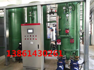 真空除氧器工作原理(射流、吸卷、紊流、传热、传质、水膜裙、淋雨状、饱和)凝结水及补充水首先进入除氧头内旋膜器组水室,在一定压力下从膜管的小孔斜旋喷向内孔,形成高速射流,形成特效水膜,在真空条件下将大量氧气、氮气、二氧化碳等气体解析出来,被罗旋喷射器吸出从排毛管排向大气。真空除氧器处理后的水溶解氧在100цɡ/L--50цɡ/L之内,溶解氧达到部颁运行标准。真空除氧方法一般在0℃~ 60℃温度下进行。可实现水面低温状态下除氧 ,对热力锅炉和负荷波动大而热力除氧效果不佳的蒸汽锅炉 ,均可改造成真空除氧,从而获得满意的除氧效果,节省能耗经济效益显箸。相对于热力除氧技术来说:它的加热条件要求很低 ,锅炉房自耗汽量减少 ,并且真空除氧器可低位布置 ,运行安全可靠,检修维护方便。