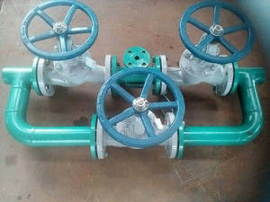 一、 系统简介及工作原理 1. 胶球清洗装置系统简介 胶球清洗装置主要由收球网、二次滤网、装球室、胶球泵、电气控制柜等部件组成。对于大机组采用单元制系统即凝汽器每一侧使用收球网、装球室、胶球泵各一台;对于小机组通常采用共用制系统,胶球清洗时先把比冷却管内径大1-2mm的海绵胶球放入装球室,在胶球泵的作用下胶球被送入循环水进水管,随着循环水的流动,胶球被挤入凝汽器铜管中进行擦洗,胶球通过凝汽器铜管后与循环水一起进入收球网,随后被胶球泵抽出,再进入装球室。如此循环,胶球不断擦洗凝汽器冷却管内壁,使之保持清洁。 使用这种装置可在机组不减负荷的情况下清洗凝汽器,提高凝汽器的传热效率,防止汽轮机热效率因背压升高而降低,同时可防止冷却管因结垢而腐蚀,延长冷却管的使用寿命,是节能和改善劳动条件的理想设备。 二、胶球清洗装置各组成部份的性能及结构简介 1. 收球网 胶球清洗装置的关键设备是收球网,其效果决定于收球率,而收球率又决定于收球网的完善度。过去,收球网有SL型与SF型等种类,实践证明这类收球网效率低,胶球损失大,主要表现在:收球率低而不稳、严密性差、卡球等;胶球泵出力不足时,收球率明显下降;收球网水力工况不稳时,收球率也明显下降。 我公司针对现有收球网的上述缺点,根据循环水进出管的直径大小,设计了单板式SD型收球网(适用于公称直径≤DN900的母管中)和“V”型双板式SQ型收球网(可用于公称直径≥DN800的母管中)两大系列。 1.1 单板式收球网(SD型) SD型单板式收球网在保持了原有收球网相对稳定性的基础上,在内部网板及下部出球口处进行了针对性的改进设计,使得网板呈整体式结构,采用隔圈、螺杆压紧式结构,保证各栅条间的距离及整体的强度,不夹球、不变形;出球口加装了一套“压顶装置”防止网板经长期运行产生变形与出球口贴合不牢。 1.2 双板式收球网(SQ型) SQ型收球网是一种新型收球网,具有以下特点:①改变收球网的结构型式,收球时,网片呈“V”型,杂草、杂物及胶球集中于网片底部,有效地克服了跑球、卡球现象。不收球时,网片呈“A”型状,可以对网片进行反冲洗。②采用强制性回收胶球机构,把胶球及杂物直接送到胶球泵入口处。③去除了关断阀、调节阀等活动部件,使其结构简单,操作方便且体积也比原来的收球网缩小了1/3。④由于采取了强制回收,所以对胶球泵出力要求不高,且不受流速、流量大小的影响,胶球回收率可达95%以上。 该型号的收球网由筒体、栅网板、电动推杆、螺旋输送机构等部件组成,收球时,栅网板呈“V”型,胶球杂物及水垢等沿栅网板表面下滑到收球网底部,并被螺旋机构强制送到胶球引出管,由胶球泵抽吸至装球室进行下一轮清洗。不收球时,利用电动推杆,曲柄机构使栅网板呈“A”型,此时既可以减小水阻,又可以利用水流对栅网板进行反洗,使遗留在栅网板上的杂物被水流冲去,保证收球效率。 2. 二次滤网 二次滤网是冷却水净化装置的主要设备之一,它清除了大于6mm以上的杂物,对保障胶球的畅通无阻和凝汽器的正常工作,起到了关键作用。 我公司生产的二次滤网有:外旋式滤网(WE型)、切换式滤网(FE型)、电动射流反冲式滤网(DYL型)、全密封电力传动反冲式滤网(DII型)可供选择。详见专项说明书。 3. 装球室 装球室是胶球清洗装置中用于放球、取球、存储和观察胶球循环情况的装置。它由外壳、漏斗、切换阀等组成,并配有观测窗、放气、放水阀门等。 4. 胶球泵 胶球泵是胶球清洗系统中使胶球进行不断循环的动力设备。该泵是一个专用的无障碍离心泵,其叶轮由两叶片构成的管状通道,具有不堵塞、不切球和胶球磨损小等优点。 5. 分汇器 分汇器是一个三通(管)阀。通过其中导向板的切换可使胶球进入需要清洗的一侧凝汽器中。它也可作为收球网胶球引出管的汇合和胶球管的分流三通管使用。 供应定压补水装置|全自动软水器|ECH全自动加*装置|容积式/半容积式热交换器, 浮动盘管热交换器|板式热交换器|定压补水真空脱气机组|旁流水处理器|全程综合水处理器|动态离子群水处理机组|稳压膨胀器|凝结水回收器|疏水自动加压器|水箱水处理机|除铁除锰过滤器|智能换热机组|紫外杀菌器|自动反洗高速砂滤装置